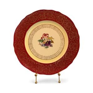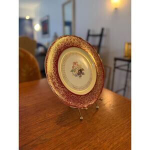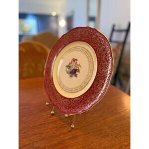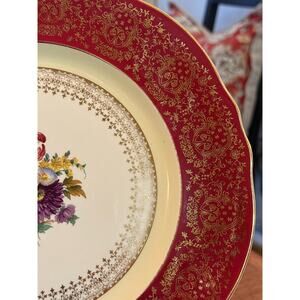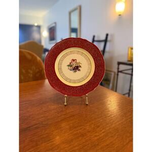 Vintage Steubenville Porcelain Dinner Plate – Floral Center, Red, Pattern #2049