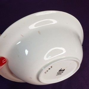 Pre-owned condition. Has a chip on the underside, kiln marks, and staining as shown. From a non-smoking home.