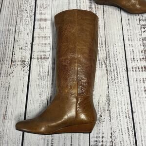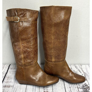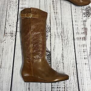 Vintage Steve Madden Knee High Boots size 7M INTYCE Brown Leather Buckle Pull On