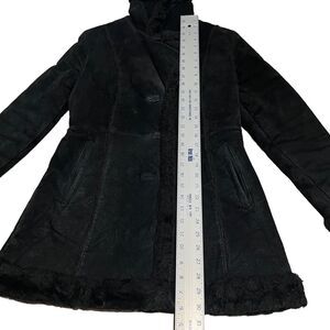 Vintage Steve Madden Leather Coat Small Black Fur Lined Y2K Suede Jacket