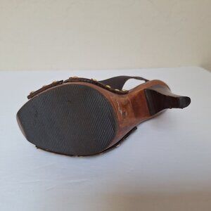Vintage Steve Madden studded leather slingback sandals peep toe wood platform