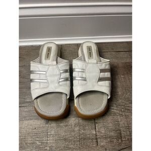 Vintage Steve Madden white slip on slides size 10. White and silver. 1990’s Y2K style. Some wrinkling in leather as shown in pictures.