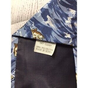 I have owned this for over 20 years and have worn it very little. Vintage 90s. Shows minor signs of wear and use. 100% polyester. Has Water, sky, ark , Noah, and animal print. See pictures for actual condition and more details before purchasing