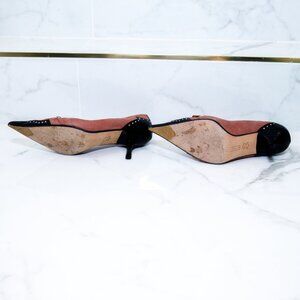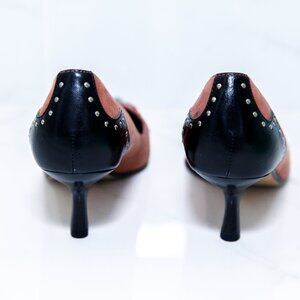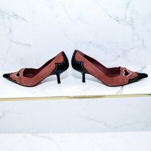 Vintage Steven by Steve Madden Red Black Leather Suede Kitten Heel Heart and Studs Accents US 8.5 Pointed Toe