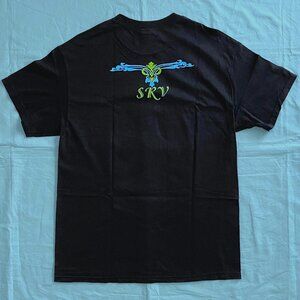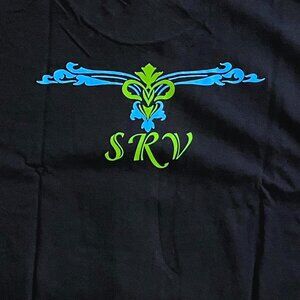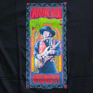 Remembering the incendiary player Stevie Ray Vaughn! SRV!. None better and we miss him! Colorful Gig Poster Art front / SRV Badge back. Size Large measures 20"w x 28.5"h. Gently worn and in excellent condition.