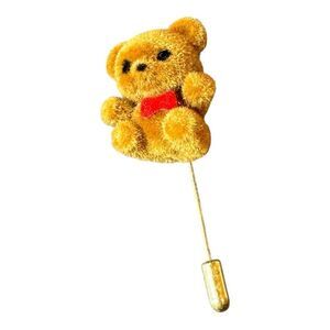 Charming set of vintage brooch pins. Features a variety of designs including a bear, flower, guitar shell and key. Perfect for adding a unique touch to any outfit. Denim