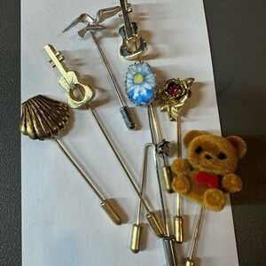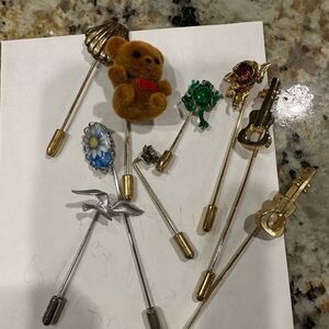 Vintage Stick Pin 8 bear flower guitars rhinestone shell music frog Hat pins sweater pins purse charms Rare retired