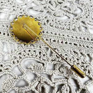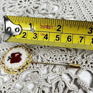 Vintage Stick Pin Apple Cross Stitch Gold Tone Jewelry Teacher Gift Lapel Brooch