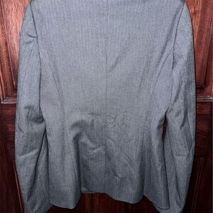 Stay warm and stylish with this Vintage Stile Benetton Women's Blazer in a sophisticated gray wool blend. This fitted, mid-length jacket features a notched lapel collar, fully lined interior. Ideal for spring, this blazer is a versatile addition to your wardrobe. Dry clean only. Size EU 40/US 8. Pre-owned, in excellent condition.
