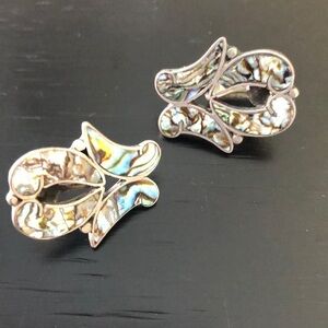Vintage Stirling Silver and Abalone Screw Back Earrings. Very good vintage condition. Silver is tarnished; I do not clean vintage jewelry as IMO patina adds to the beauty, however it can be polished if desired. Stamped 925 on back as well as JP stamped, I believe as designer/brand. Please review all photos for item details, condition, and measurements. Love the item but not the price? SEND ME AN OFFER! 😘 Earrings, screw, silver, Stirling, 925, jewelry, accessory, abalone, authentic, vtg, vintage, Mexico, evening, night out, date, event, dressy, natural, Shell, organic, retro, Mad Men, beautiful, colorful, chic, unique, exotic, gift, birthday, anniversary, lunch, brunch, distinct