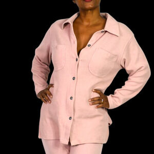 Vintage Stirrup Pant Set Dusty Pink Blush Waffle Knit Shirt Shacket CoOrd Small
