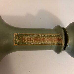 Vintage Stitzel-Weller Whiskey Bottles Set of 2 | Green Frosted Glass Decanters with Heraldic Crests