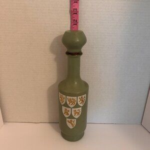 Vintage Decanter Whiskey Bottle/ Federal Law Forbids Reuse Large Decorative Whiskey Bottle/ Bar Decor/ Sage Green Gold Lion White Crest Liquor Bottle Decanter. The bottle with a glass topper in place measures approximately 12 3/16” T x 2 3/4” W ( at base) x 1 11/16” W ( at top opening measuring one side to next) x the opening itself is approximately 1” W