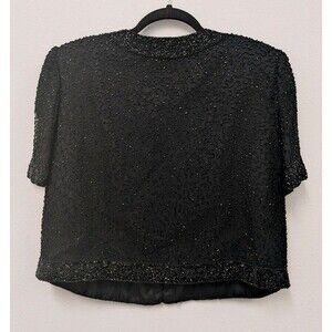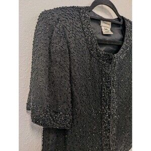 Vintage Sténay Black Beaded Silk Evening Jacket sz S Wedding Formal Matron