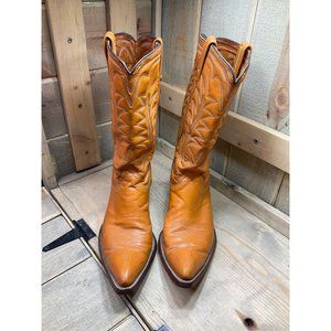 Vintage Stock Show Boots 9D Western Tan Pointed Toe Leather Mens