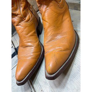Description: Vintage Stock Show Boots 9D Western Tan Pointed Toe Leather Mens