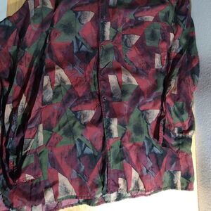 Vintage Stock Options Abstract Geometric Silk Button Down Shirt, 100% Silk, Size Large - Measures p2p=23" Length=31" Sleeve Length=23" - Excellent Condition, No Flaws