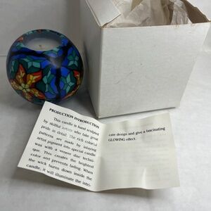 Vintage Stone Candles CA USA Round Stain Glass Design Hand Made NEW w/Papers