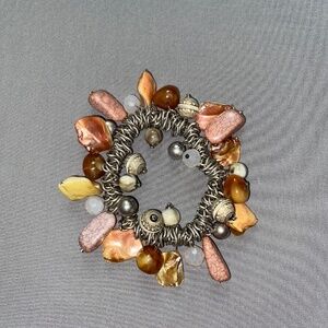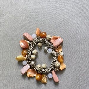 Vintage Stone Dangle Stretch Statement Bracelet Pinks Browns Neutrals