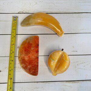 Vintage Stone Fruit Italian Alabaster Decor Lot of 3 Banana Watermelon & Peach