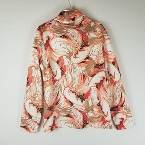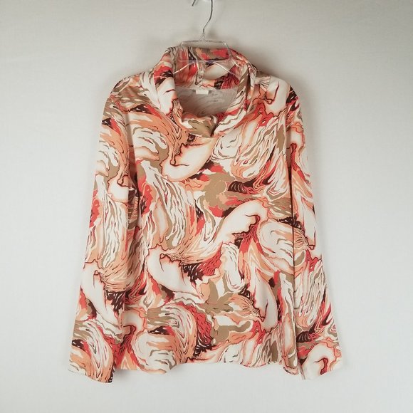 Vintage Stone Marbled Geode Print Cowl Neck Long Sleeve Blouse Sz M