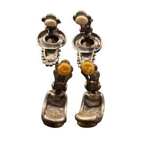 Vintage Stone Silver-Tone Clip-On Earrings Two Pairs Slight
