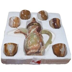 Vintage stone tea pot and 6 cups. Box says it's soap stone.