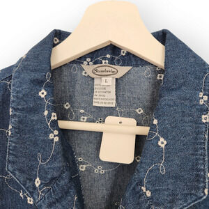 Vintage Stonebridge Jean Denim Eyelet Button Down Sleeveless Top M