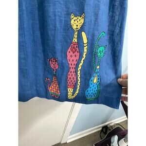 Vintage Stonebridge Linen Blend Maxi Skirt XXS Blue Painted Whimsical Cats Artsy
