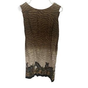 Vintage Stonebridge Made in Mexico Brown Zebra print Linen Rayon Dress Size 6P