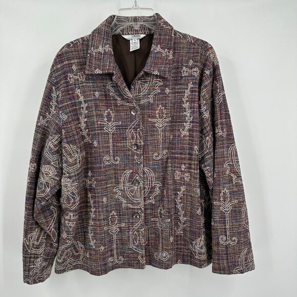Vintage Stonebridge Womens Jacket Size L Silk Blend Embroidered Beaded Tweed