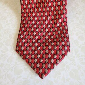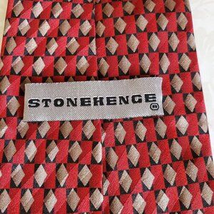 Vintage Stonehenge Mens Tie Geometric Red & Beige 100% Silk Necktie 60.5 inches