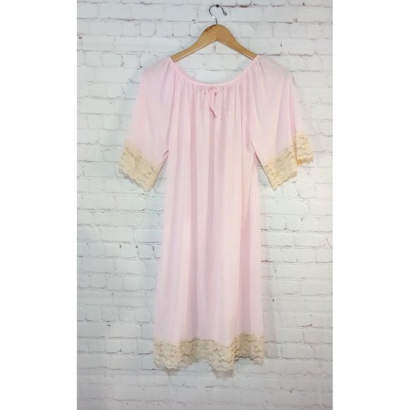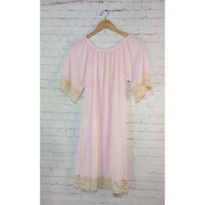 Vintage Stones Wear Nightgown Dress Pink Embroidery Women's Size Medium Made USA