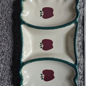 Vintage Stoneware Apple Sponeware 3-Part Divided Relish Tray