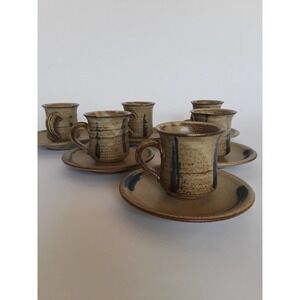 Vintage Stoneware Cup and Saucer Sets Coffee Miniature Expresso Rustic Dishes