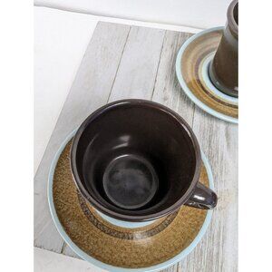 This charming set of stoneware tea/coffee cups and saucers is ideal for coffee enthusiasts. With a rustic and earthy appeal, the design stands out.
