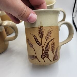 Vintage Stoneware Harvest Wheat Mugs - set of 4