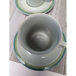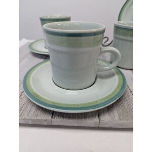 Vintage Stoneware JCPenney Sea Green Tea Coffee Cups & Saucers Set Of 3