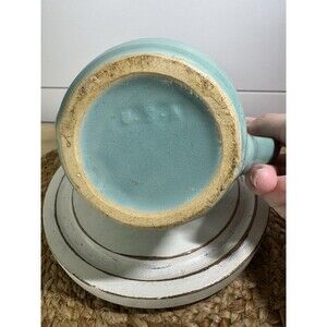 In good condition, some scratches and signs of use. No chips or cracks. Glaze issue on the handle, manufacturer defect.