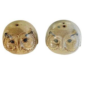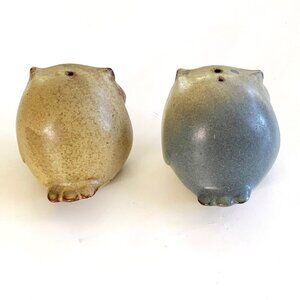 Vintage Stoneware Pottery Chubby Owl Salt And Pepper Shaker Set Japan