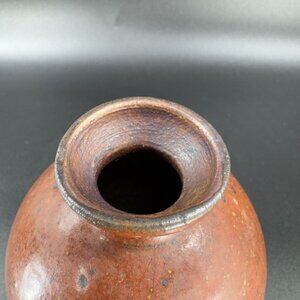 Vintage Stoneware Pottery Vase Vessel With Brown Red Glaze Artist Marked JB
