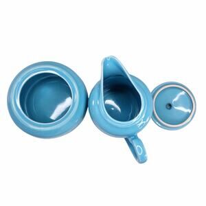 Light blue stoneware sugar & creamer set from the 1980s. Made in Korea with original box. I do not respond to offers made via messages, please use the offer button.