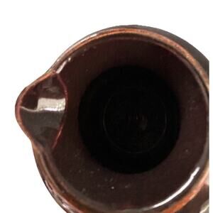 This vintage stoneware syrup pitcher jug features a brown and tan two-tone design, standing at 6 inches tall. Made of earthenware using pottery techniques, this unmarked jug weighs 1 pound and 9 ounces. Perfect for adding a touch of cottage core charm to any kitchen or dining space, this pitcher is both functional and decorative with its rustic appearance and vintage appeal. Ideal for serving up homemade syrup or as a unique vase for flowers, this piece is sure to add character to any home decor