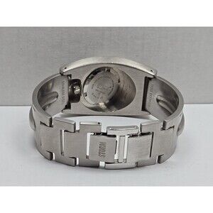 It has an extra clasp that doesn't match the bracelet. Item shows light scuffs and scratches consistent with normal wear. It has power and is currently running.