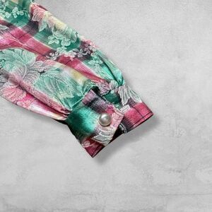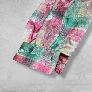 The Vintage Storybook Heirlooms Girls Dress in size 8 features a charming plaid lace design with metallic brocade detailing, giving it a Victorian-era look. Made of satin in the 1980s, this original piece is perfect for a party occasion, combining vintage elegance with a touch of pink color. Designed by Storybook Heirlooms in the United States, this dress is a unique and special addition to any young girl's wardrobe, ideal for those who appreciate classic and timeless fashion.