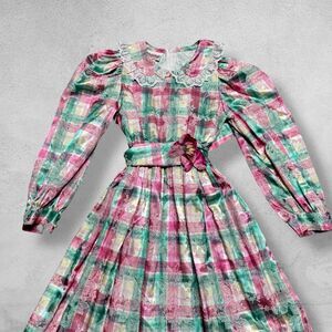 Vintage Storybook Heirlooms Girls Dress 8 Plaid Lace Metallic Brocade Victorian