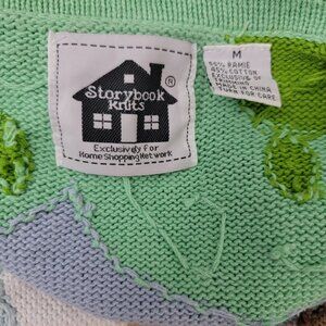 Vintage Storybook Knits Kids Playing Toys Trees Cardigan Sweater Medium