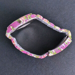 Beautiful vintage ladies watch by Strada. Features Japanese movement, colorful floral print band & frame, stainless steel back, water resistant, analog with second hand, Roman Numerals and is battery operated. We put in a new battery in June of 2024, so it still has some life left.