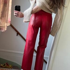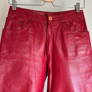 Vintage Straight Leg Red Leather Pants Biker Moto Maximalist Unique Size 27