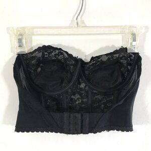 Vintage Strapless Backless Longline Lace Corset Bra Black Sz 36B